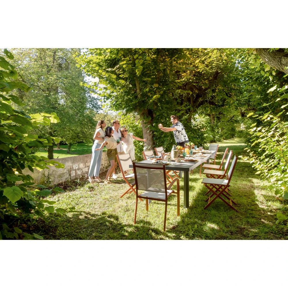 Pour profiter de votre jardin en toute sérénité lorsque vous invitez vos amis, il est toujours rassurant de disposer de fauteuils supplémentaires faciles à installer et à ranger en dehors de la belle saison. Le fauteuil de jardin empilable ARIES est destiné à une utilisation extérieure mais aussi intérieure. Comme nous, vous apprécierez sa légèreté et son design très élégant imaginé pour que sa forme permette d’en empiler plusieurs sans effort. La structure en aluminium au coloris Terracotta du fauteuil ARIES et sa toile polyester enduite Terracotta à l’effet chiné allient robustesse et facilité d’entretien. Ses accoudoirs aux très jolies courbes lui apportent une finition soignée. Fauteuil empilable avec accoudoirs ARIES en aluminium et Toile coloris Terracotta.